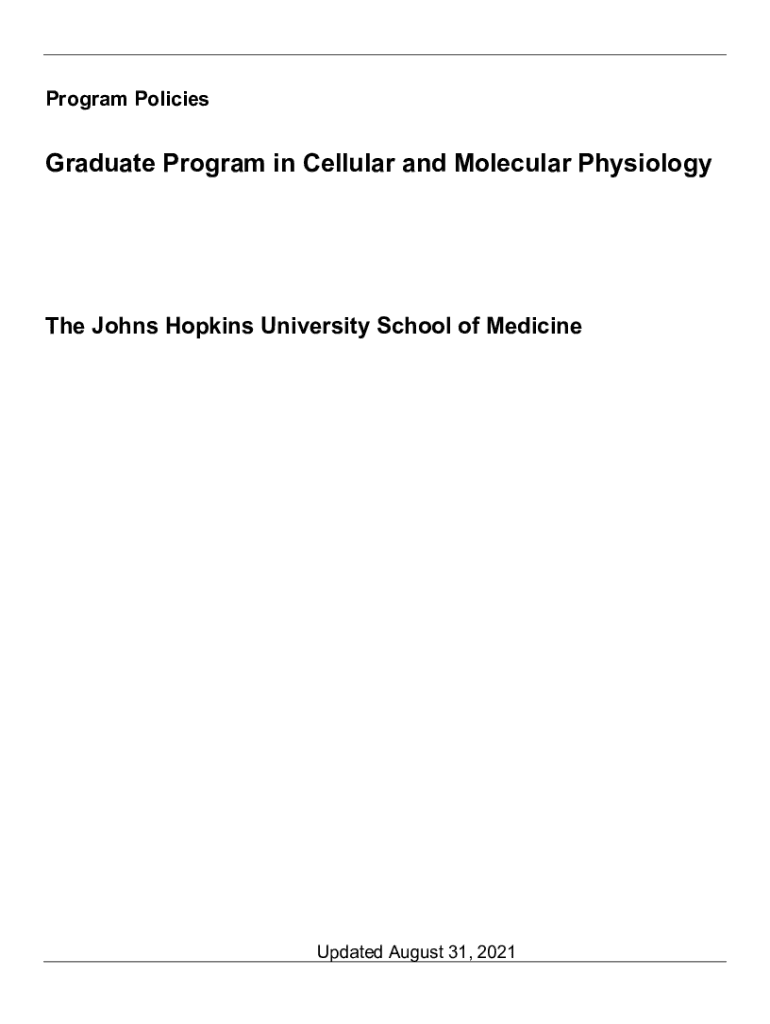 Program PoliciesGraduate Program in Cellular and Molecular Physiology Johns Hopkins University School of MedicineUpdated August 31, 20212TABLE OF CONTENTS 1) Mission Statement 2) Application and Admissions