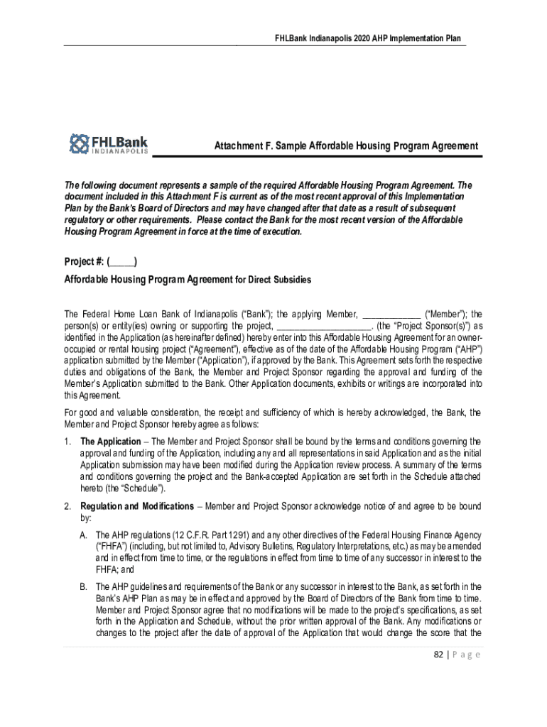 Flank Indianapolis 2020 HP Implementation PlanAttachment F. Sample Affordable Housing Program Agreement The following document represents a sample of the required Affordable Housing Program Agreement.