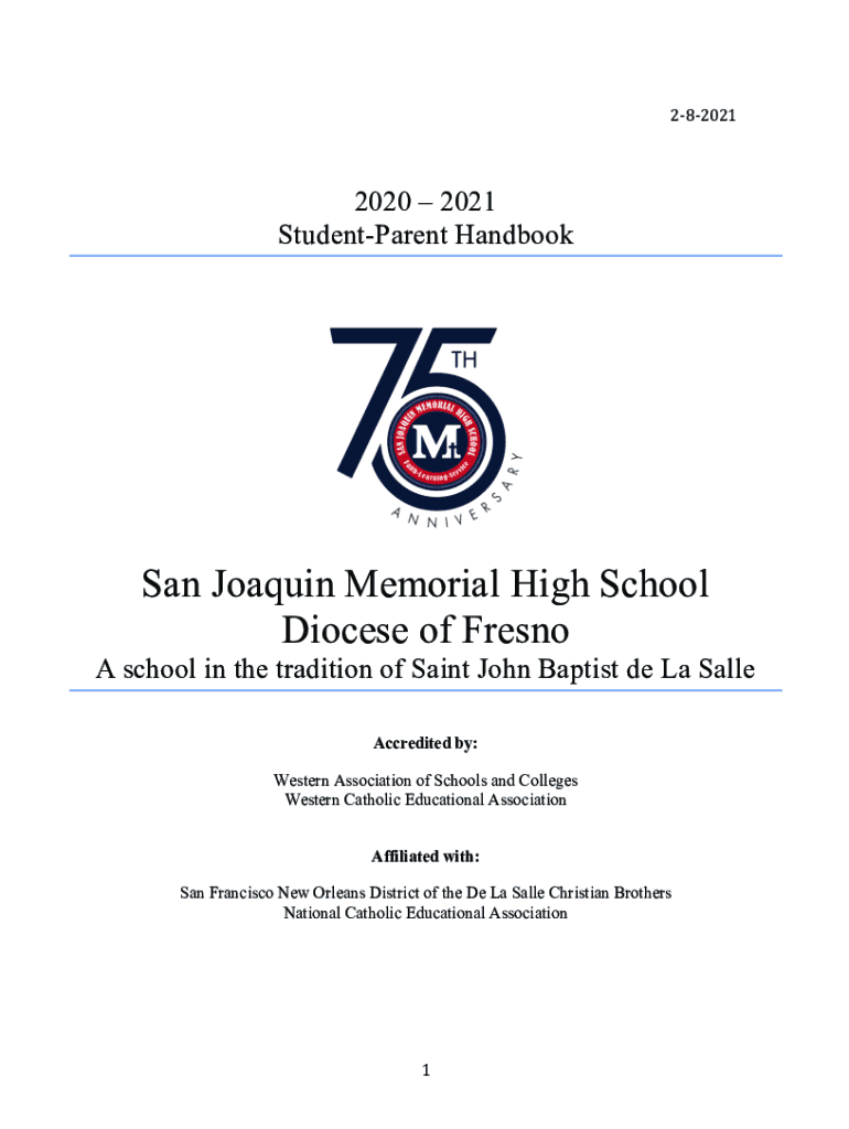 Parents or legal guardians of students attending San Joaquin Memorial High School may be required to file certain documents or forms.