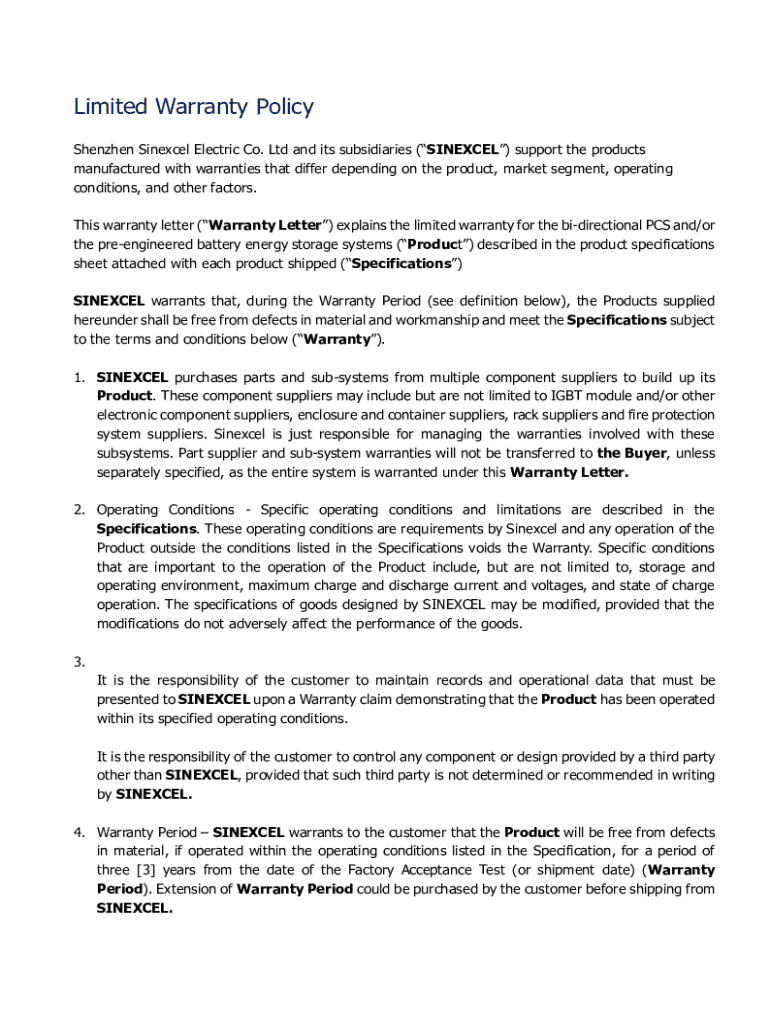 Limited Warranty Policy Shenzhen Sin excel Electric Co. Ltd and its subsidiaries (SINCE) support the products manufactured with warranties that differ depending on the product, market segment, operating