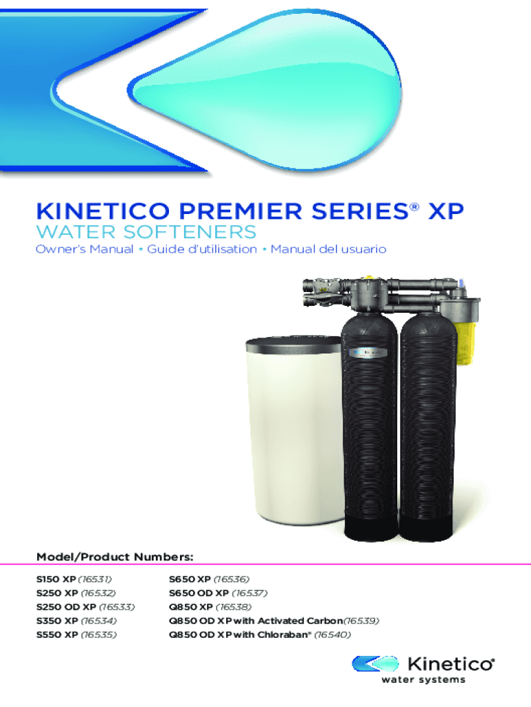 KINETIC PREMIER SERIES XP WATER SOFTENERSOwners Manual Guide utilization Manual Del usuarioModel/Product Numbers: S150 XP (16531)S650 XP (16536)S250 XP (16532)S650 OD XP (16537)S250 OD XP (16533)Q850