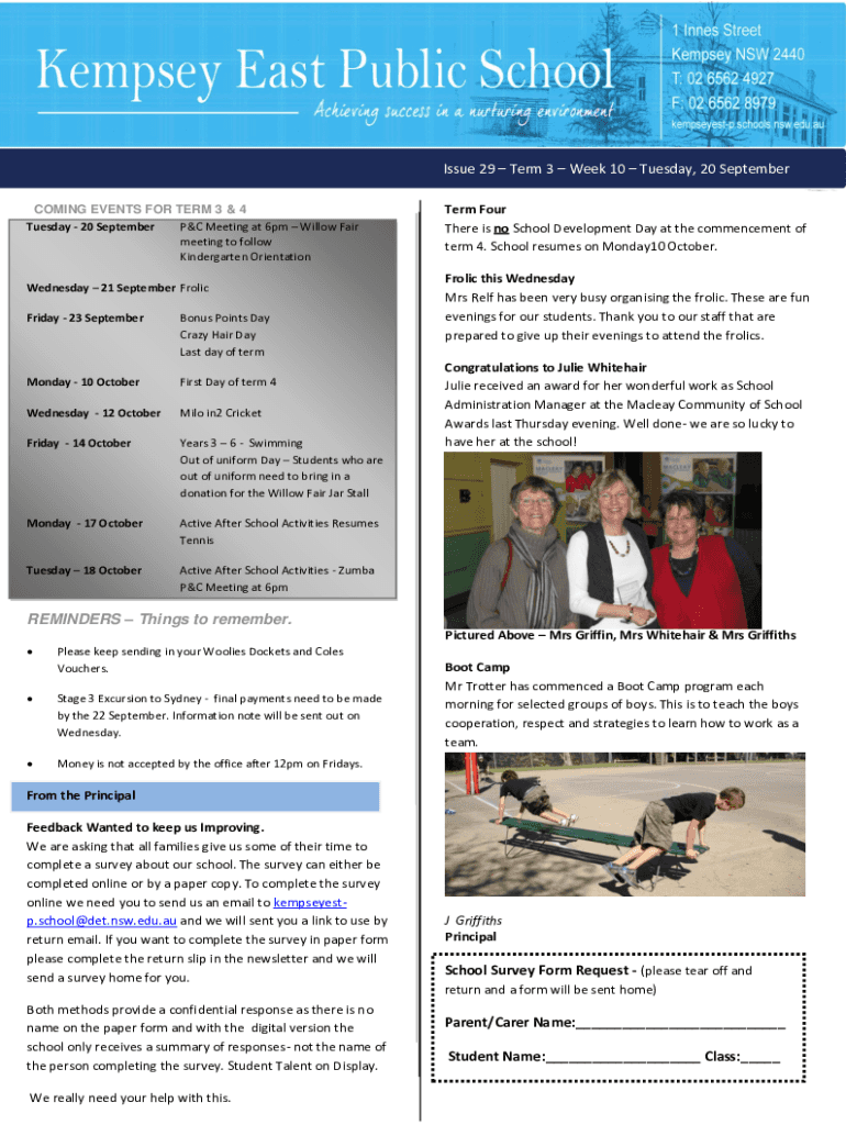 Issue 27 Term 3 Week 8 Tuesday, 6 September 2011Issue 29 Term 3 Week 10 Tuesday, 20 September