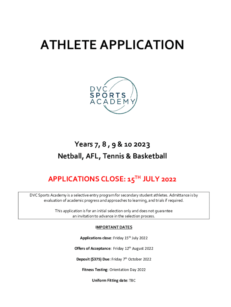 ATHLETE APPLICATIONYears 7, 8, 9 & 10 2023