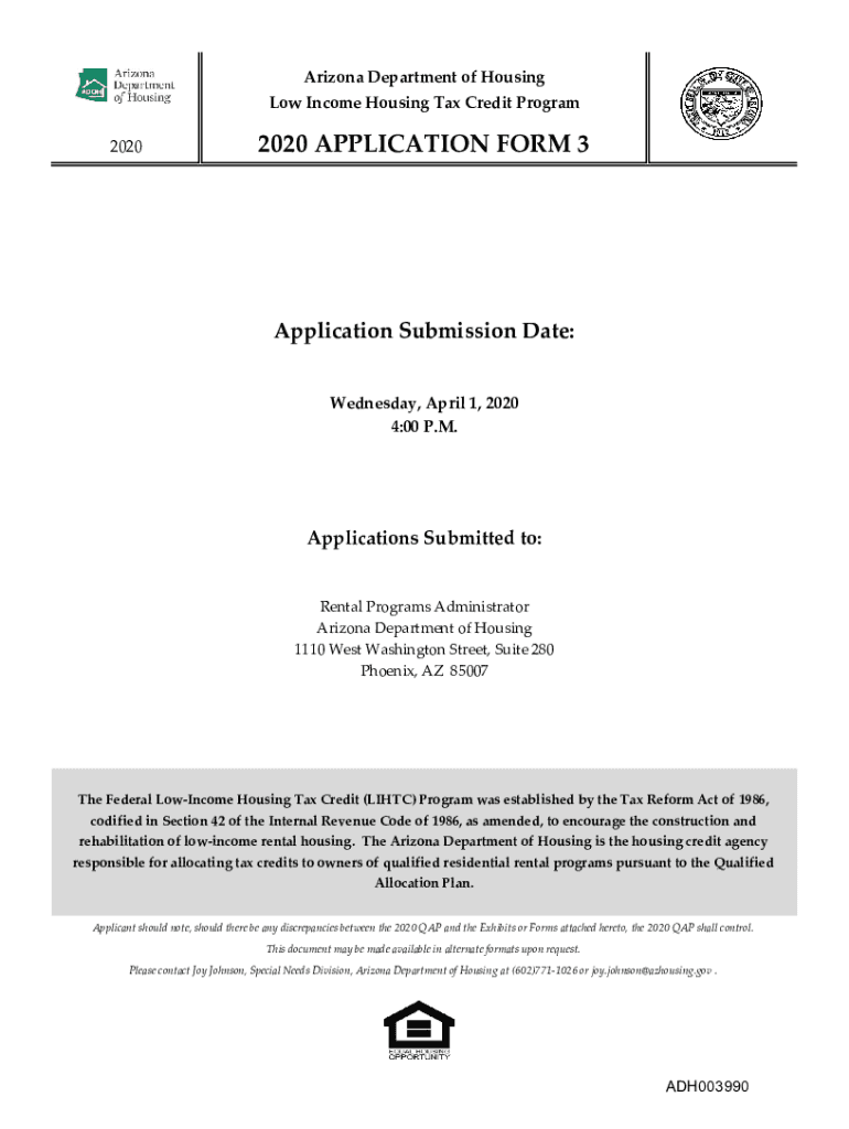 Arizona Department of Housing Low Income Housing Tax Credit Program 20202020 APPLICATION FORM 3Application Submission Date: Wednesday, April 1, 2020 4:00 P.M. Applications Submitted to: Rental Programs