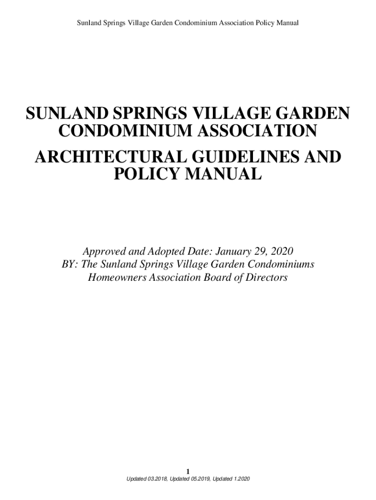 Sun land Springs Village Garden Condominium Association Policy ManualSUNLAND SPRINGS VILLAGE GARDEN