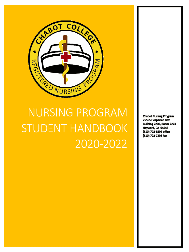 NURSING PROGRAM STUDENT HANDBOOK 20202022Chabot College Nursing Program Class 2022 Student HandbookWelcome to the Cabot College Nursing Programmer Student, The information in this handbook is designed