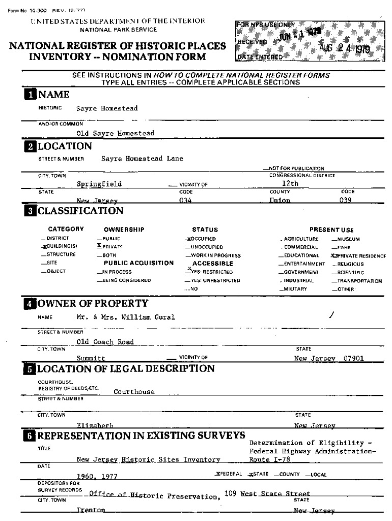 INVENTORY NOMINATION FORM