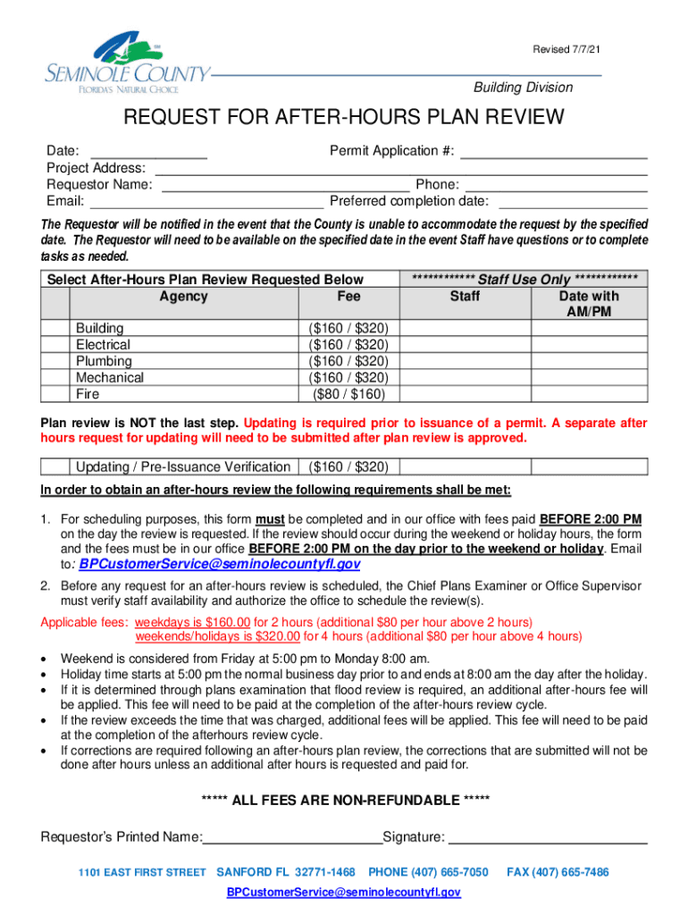 Get the free Building Division REQUEST FOR AFTER-HOURS PLAN REVIEW