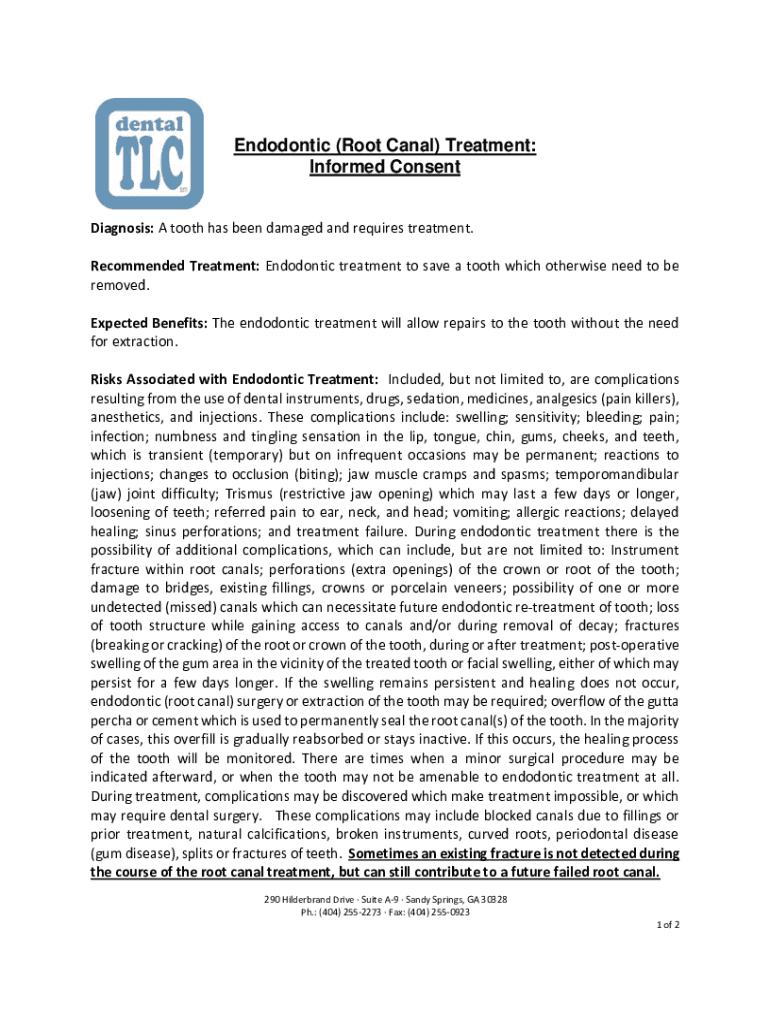 Who needs newtonbrookdentistrycominformed-consent-forinformed consent for endodontic?