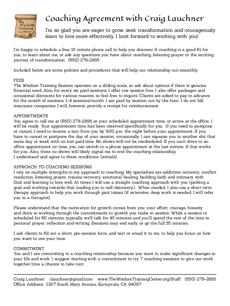 Coaching Agreement with Craig Launcher I'm so glad you are eager to grow, seek transformation and courageously learn to love more effectively. I look forward to working with you! I'm happy to schedule
