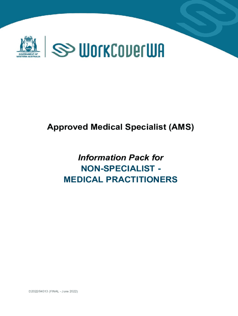 Approved Medical Specialist (AMS) Information Pack for NONSPECIALIST MEDICAL PRACTITIONERSD2022/94013 (FINAL June 2022)Contents About Recover WA2Role of an Approved Medical Specialist2Eligibility