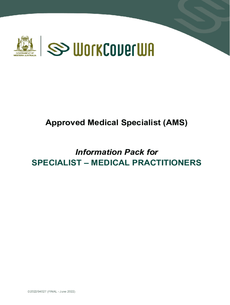 Approved Medical Specialist (AMS) Information Pack for SPECIALIST MEDICAL PRACTITIONERSD2022/94027 (FINAL June 2022)Contents About Recover WA2Role of an Approved Medical Specialist2Eligibility criteria