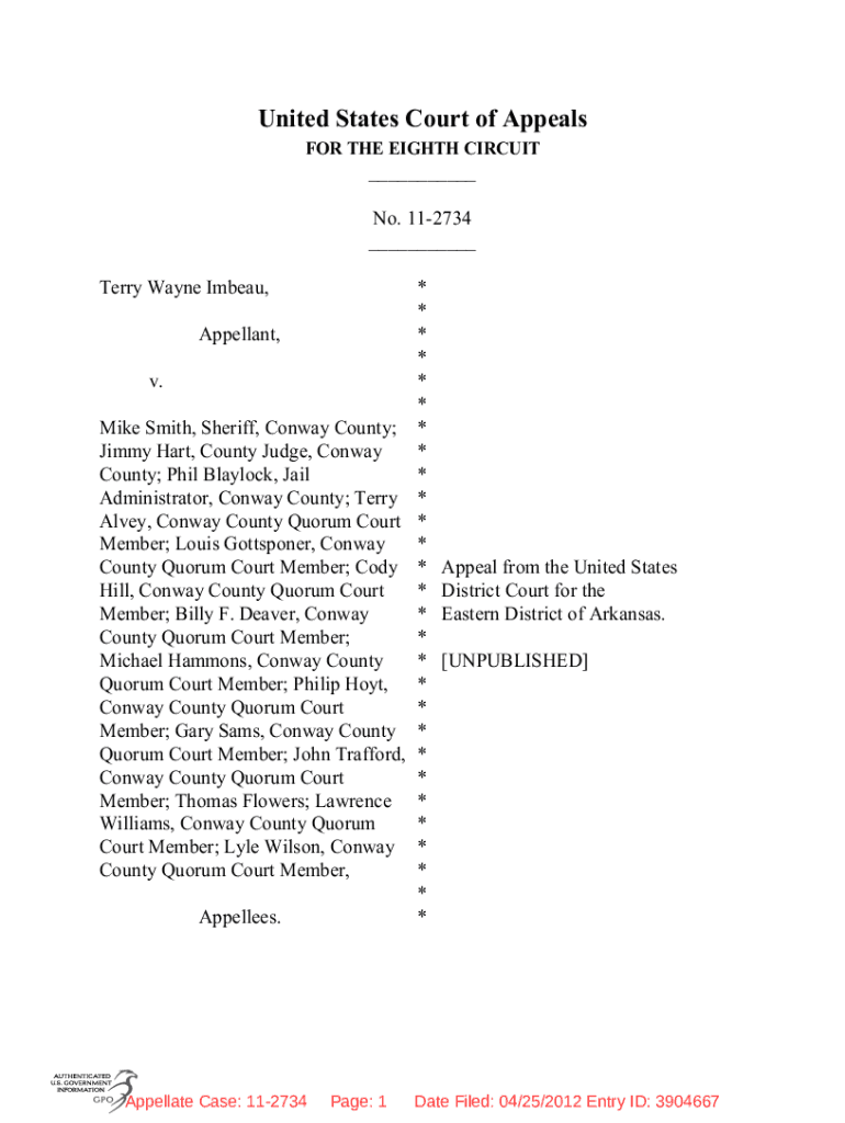 United States Court of Appeals FOR THE EIGHTH CIRCUIT___ No. 112734 ___ Terry Wayne Beau, * * Appellant, * * v. * * Mike Smith, Sheriff, Conway County; * Jimmy Hart, County Judge, Conway * County;