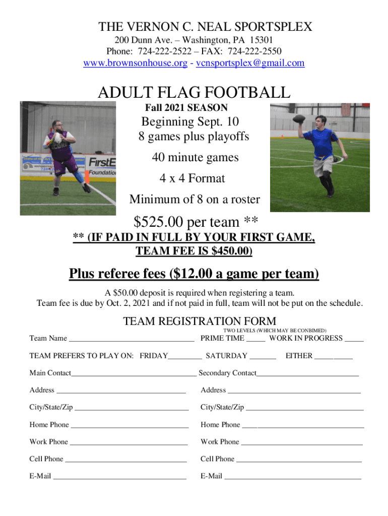 Phone: 7242222522 FAX: 7242222550www.brownsonhouse.org vcnsportsplex@gmail.comADULT FLAG FOOTBALL