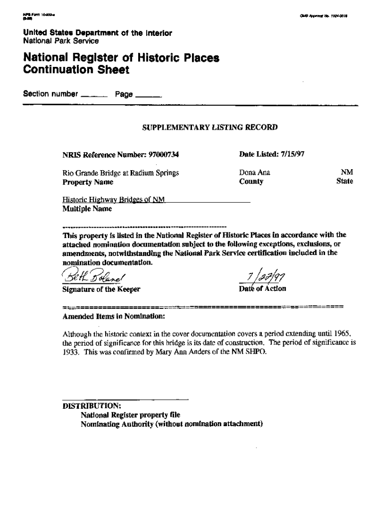 NP8 Form 1IWOO.OM8 Approve No. f024OUnited States Department of the Interior National Park ServiceNational Register of Historic Places Continuation Sheet Section numberSUPPLEMENTARY LISTING RECORDERS