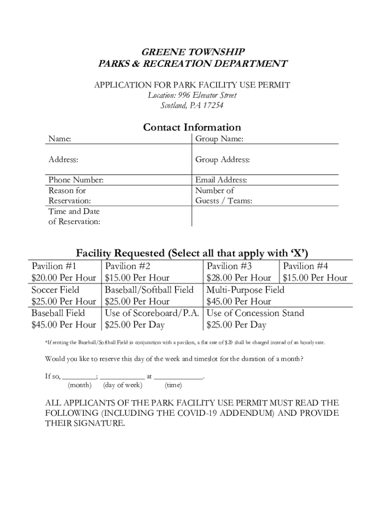 APPLICATION FOR PARK FACILITY USE PERMIT