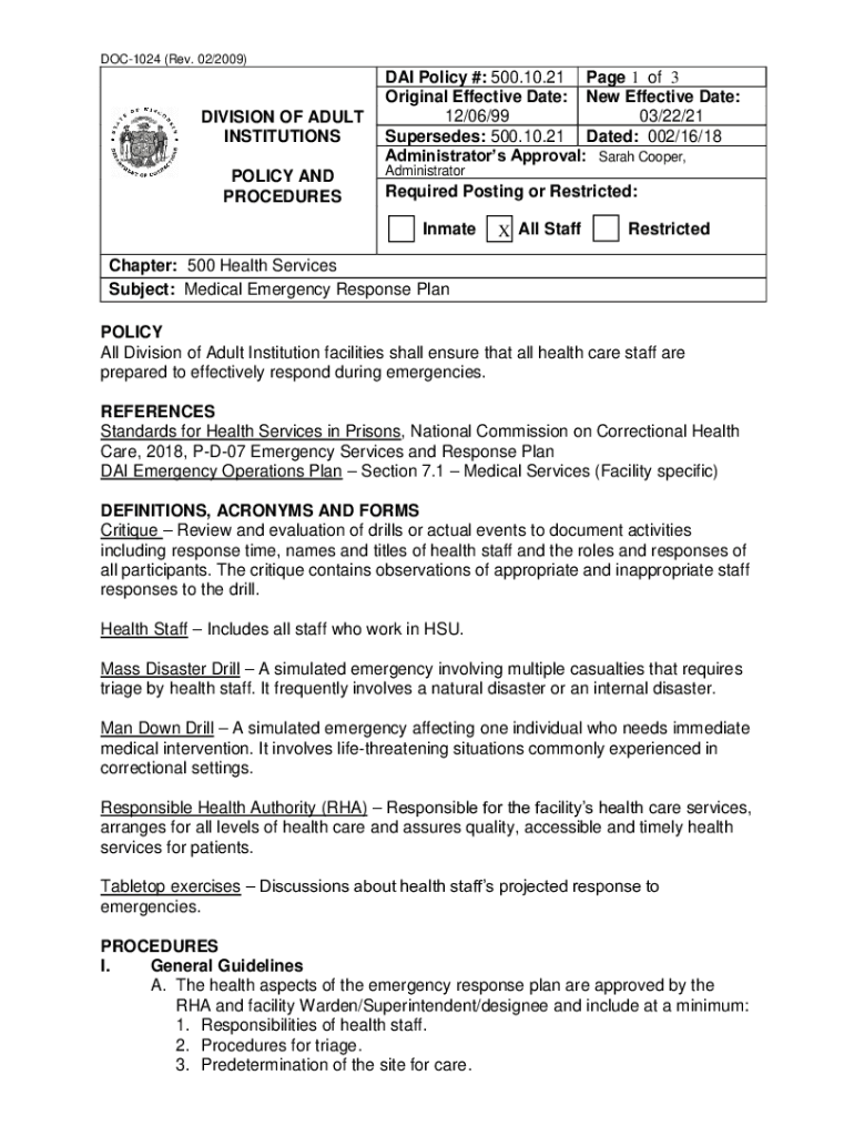 DOC1024 (Rev. 02/2009)DIVISION OF ADULT INSTITUTIONS POLICY AND PROCEDURES DAI Policy #: 500.10.21-Page 1 of 3 Original Effective Date: New Effective Date: 12/06/99 03/22/21 Supersedes: 500.10.21