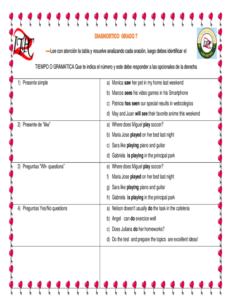 Lee con stencil la tabla y reserve analysand CADA train, Lego debs identifier El TEMPO O DRAMATIC Que the India el Nero y ester debt responder a leis optional DE la dacha 1) Present simple) Monica