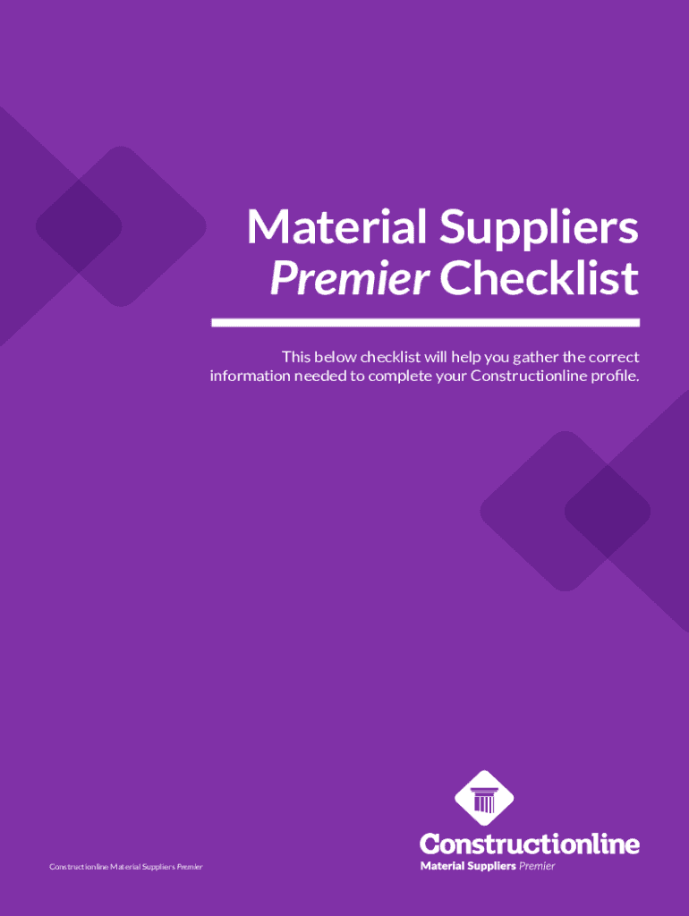Material Supplier Premier ChecklistMaterial Suppliers Premier Checklist This below checklist will help you gather the correct information needed to complete your Construction line profile. Construction