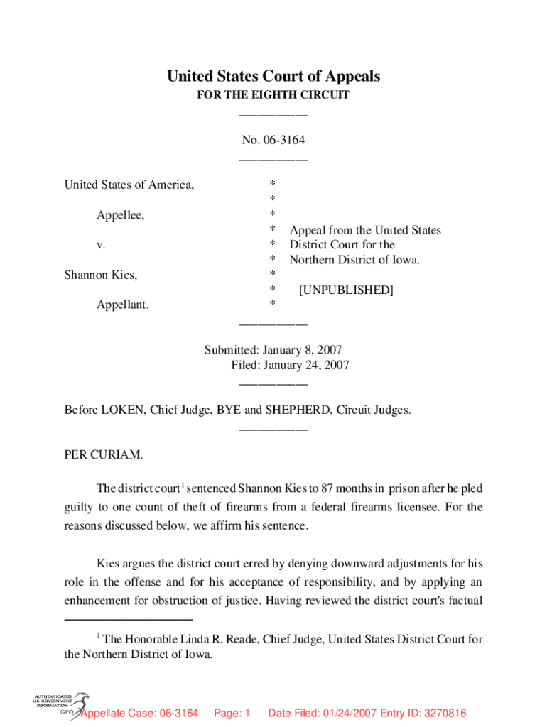 United States Court of Appeals FOR THE EIGHTH CIRCUIT___ No. 063164 ___ United States of America, Appealed, v. Shannon Lies, Appellant.* * * * Appeal from the United States * District Court for the