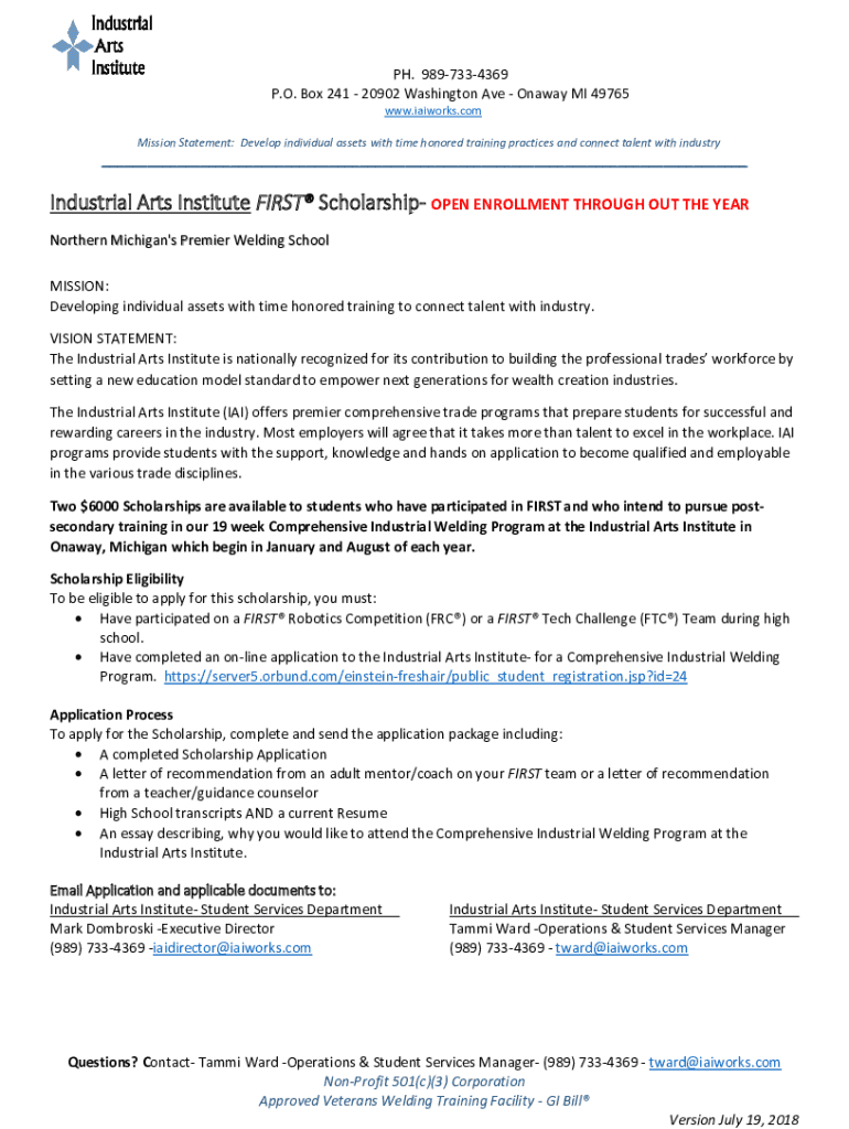 PH. 9897334369 P.O. Box 241 20902 Washington Ave On away MI 49765 www.iaiworks.com Mission Statement: Develop individual assets with time honored training practices and connect talent with industry___Industrial