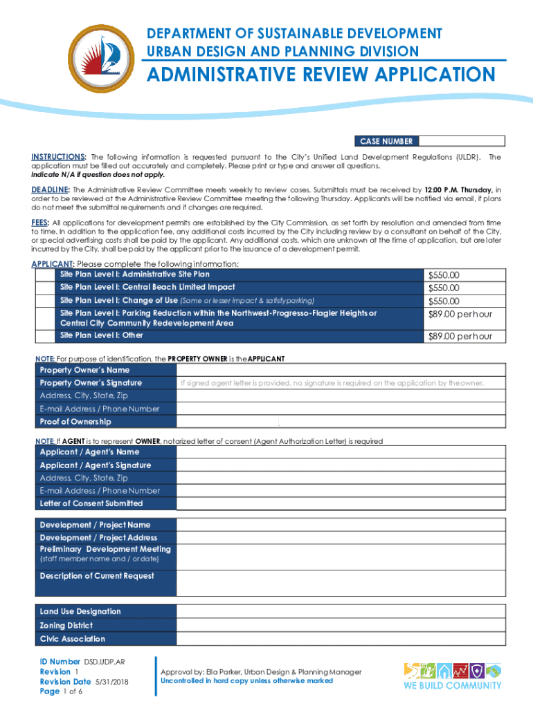 DEPARTMENT OF SUSTAINABLE DEVELOPMENT URBAN DESIGN AND PLANNING DIVISIONADMINISTRATIVE REVIEW APPLICATION CASE NUMBER INSTRUCTIONS: The following information is requested pursuant to the Cities Unified