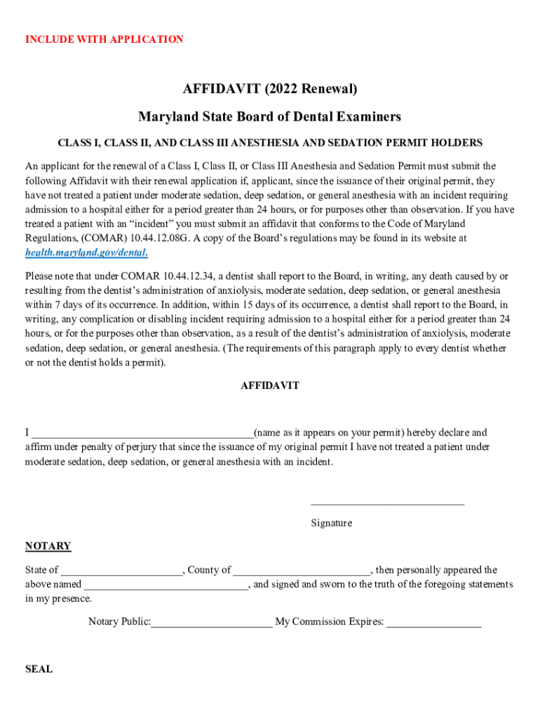 Get the free AFFIDAVIT (2022 Renewal) Maryland State Board of Dental ...