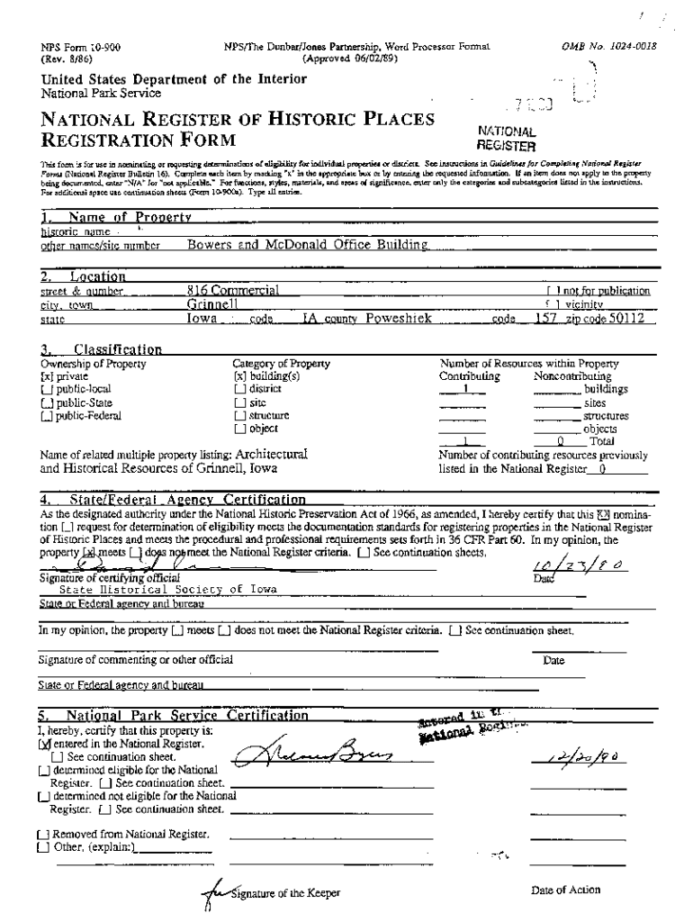 (Approved 06/02/89)NFS Form 10900