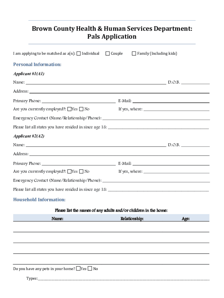 BROWN COUNTY HEALTH & HUMAN SERVICES111 N. Jefferson Street P.O. Box 22188 Green Bay, WI 543052188Phone (920) 4486000 Fax (920) 4486166Dear Applicant: Thank you for your interest in volunteering with