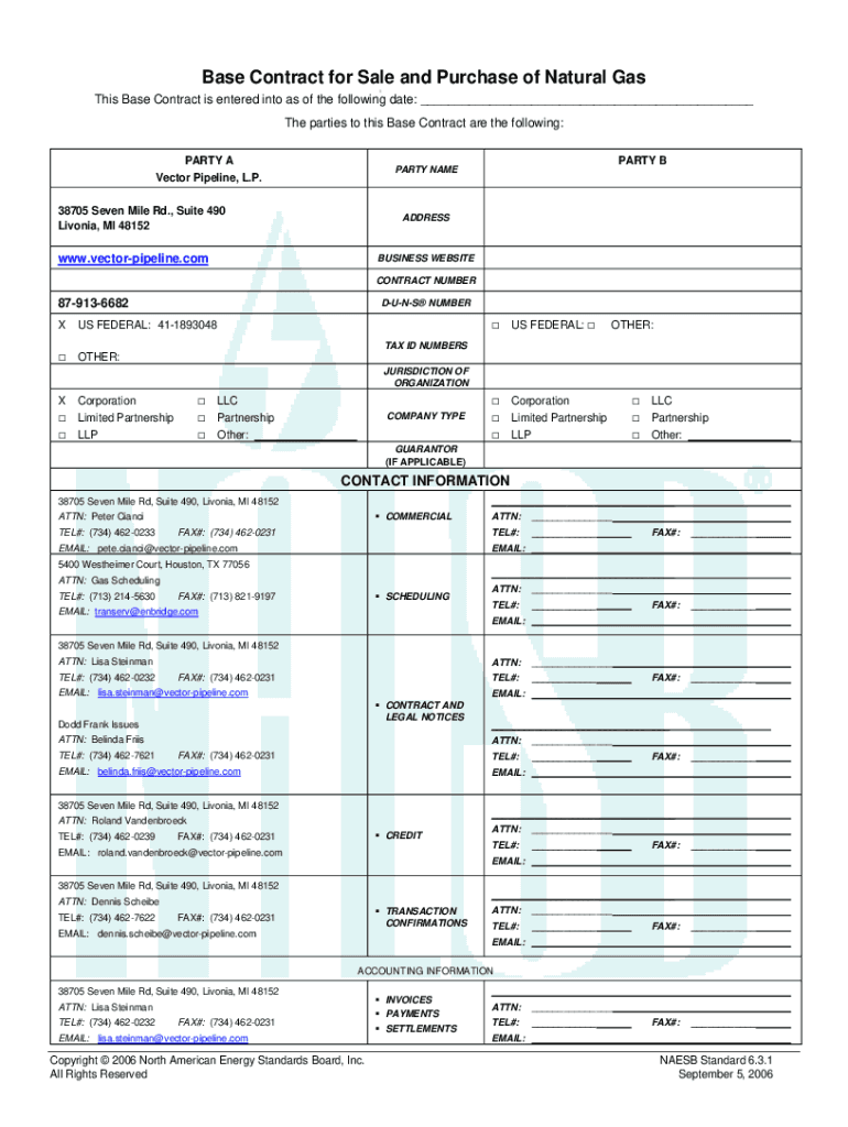 Get the free NAESB Contract for the Sale & Purchase of Natural Gas