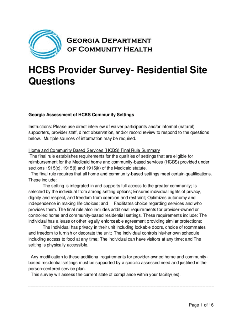 Get the free HCBS Provider Survey - Georgia Department of Community Health - dch georgia