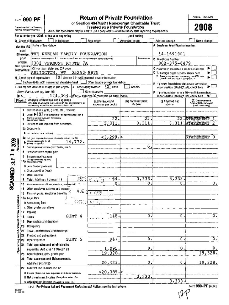 Return of Private FoundationForm 990 PF OMB No 15450052or Section 4947 (a)(1) Nonexempt Charitable Trust Treated as a Private FoundationDepartment of the Treasury Internal Revenue Service2Note. The