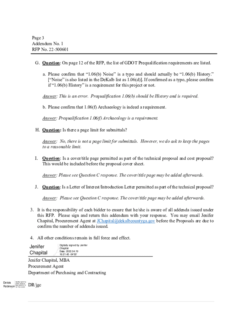 April 19, 2022, TO:ALL BIDDERS UNDER RFP No. 22500601, NORTH DRUID HILLS CORRIDOR SCOPING STUDYFROM: Department of Purchasing and Contracting, DeKalb County, Georgia ADDENDUM NO. 1 Request For Proposal