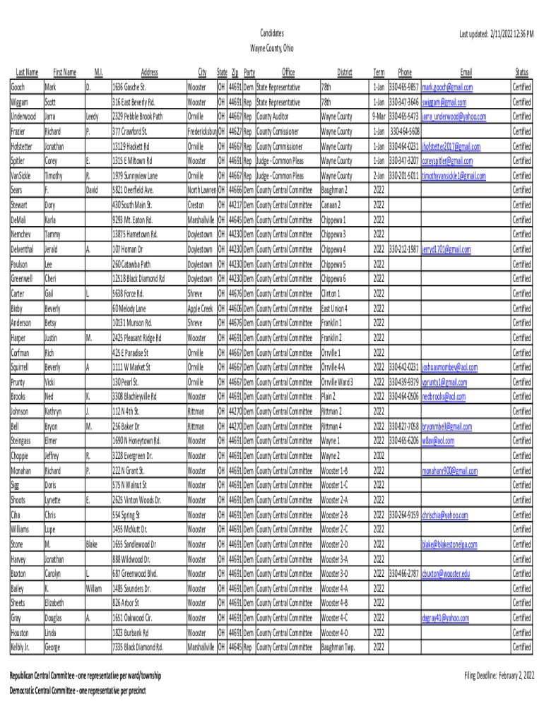 Get the free Candidates Last Name First Name M.I. Address City State Zip Party ...