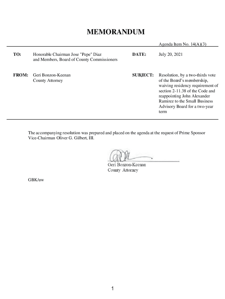 and Members, Board of County CommissionersDATE:July 20, 2021FROM:Germ BonzonKeenan