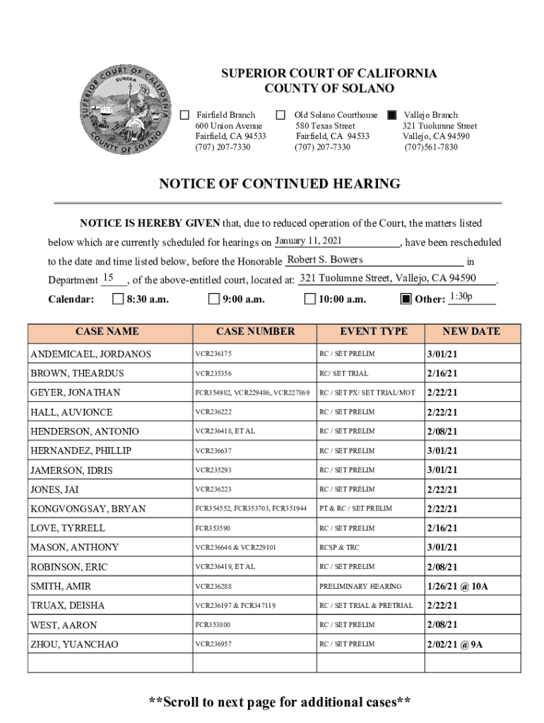 SUPERIOR COURT OF CALIFORNIA COUNTY OF SOLANO Fairfield Branch 600 Union Avenue Fairfield, CA 94533 (707) 2077330Old Solano Courthouse 580 Texas Street Fairfield, CA 94533 (707) 2077330Vallejo Branch