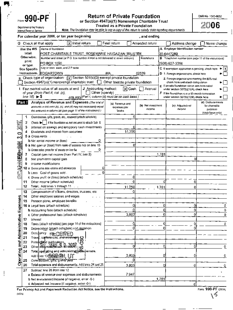 Form990PFDepartment of the TreasuryInternal Revenue ServiceReturn of Private Foundation