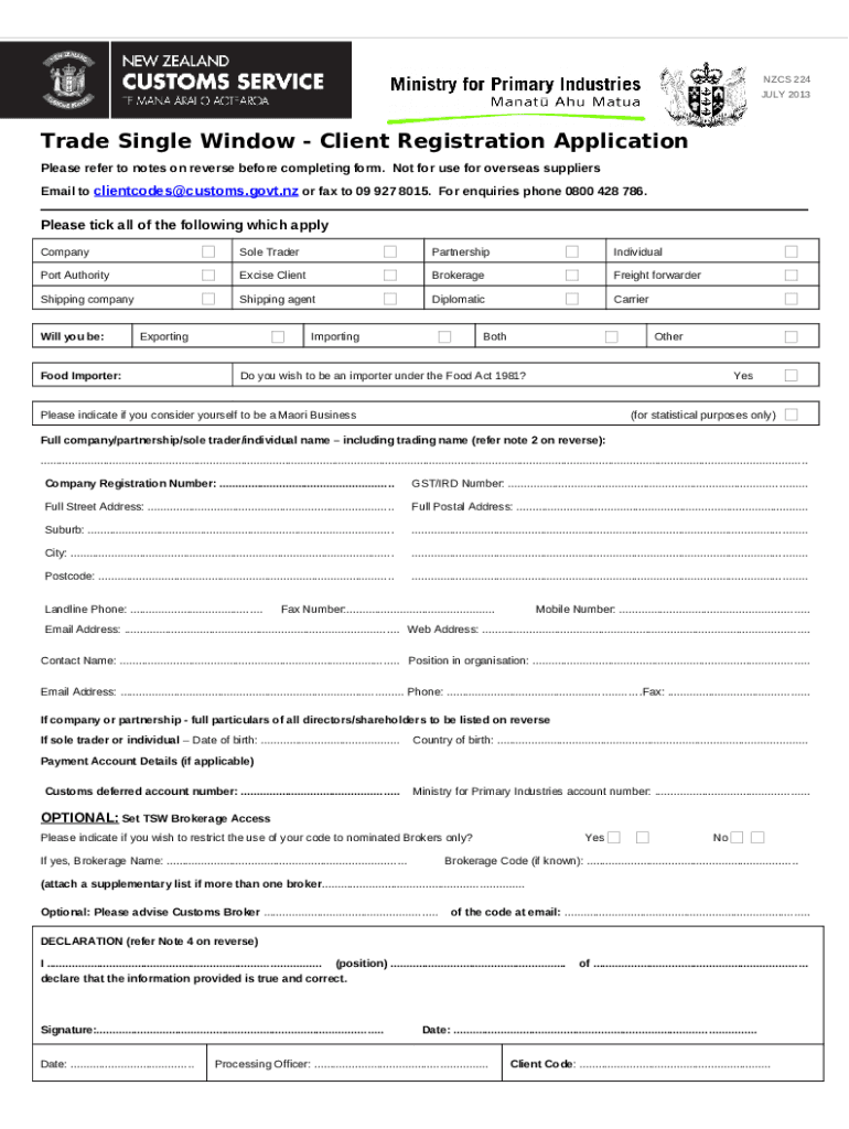 What is nzcs 224. Search, Edit, Fill, Sign, Fax & Save PDF Online. Form?