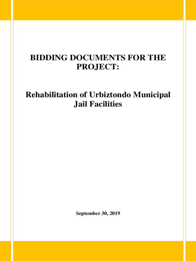 BIDDING DOCUMENTS FOR THE PROJECT:Rehabilitation of Urbiztondo Municipal Jail Facilities September 30, 2019TABLE OF CONTENTS SECTION I. INVITATION TO BID ........................................................................3