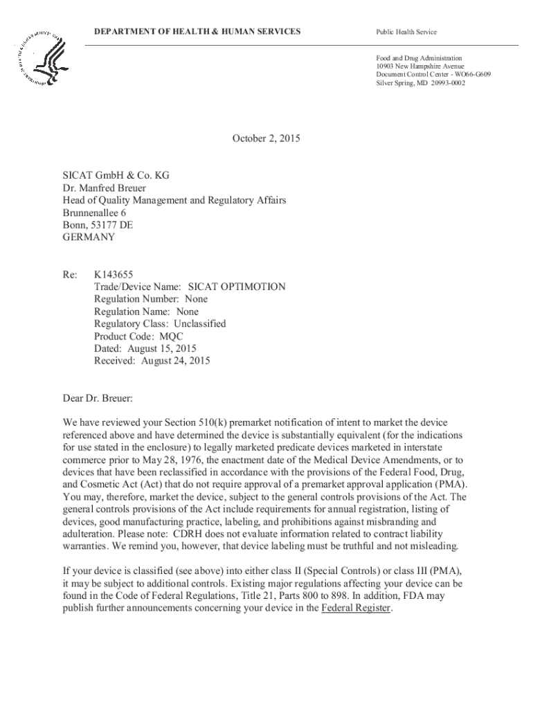 Silver Spring, MD 209930002October 2, 2015SICAT GmbH