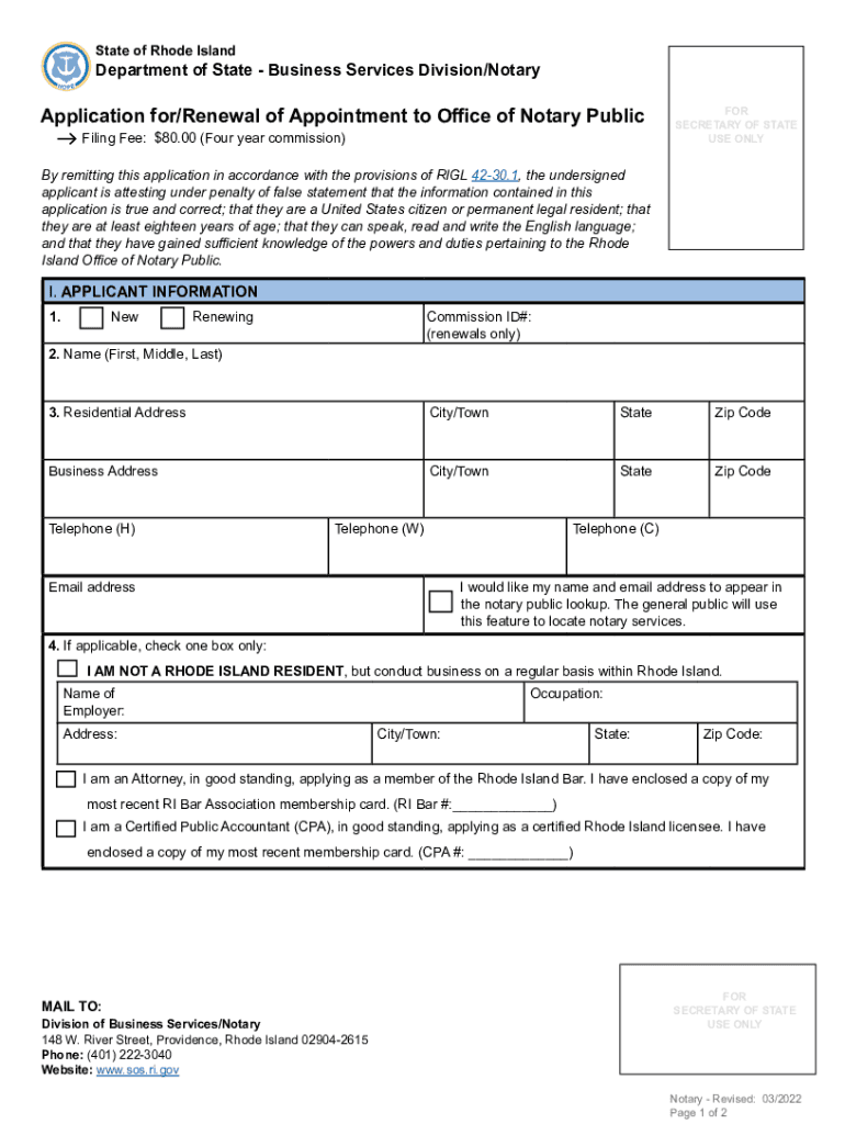 Get the free Notary Public - Department of StateBusiness Registration - State of Rhode IslandNota...