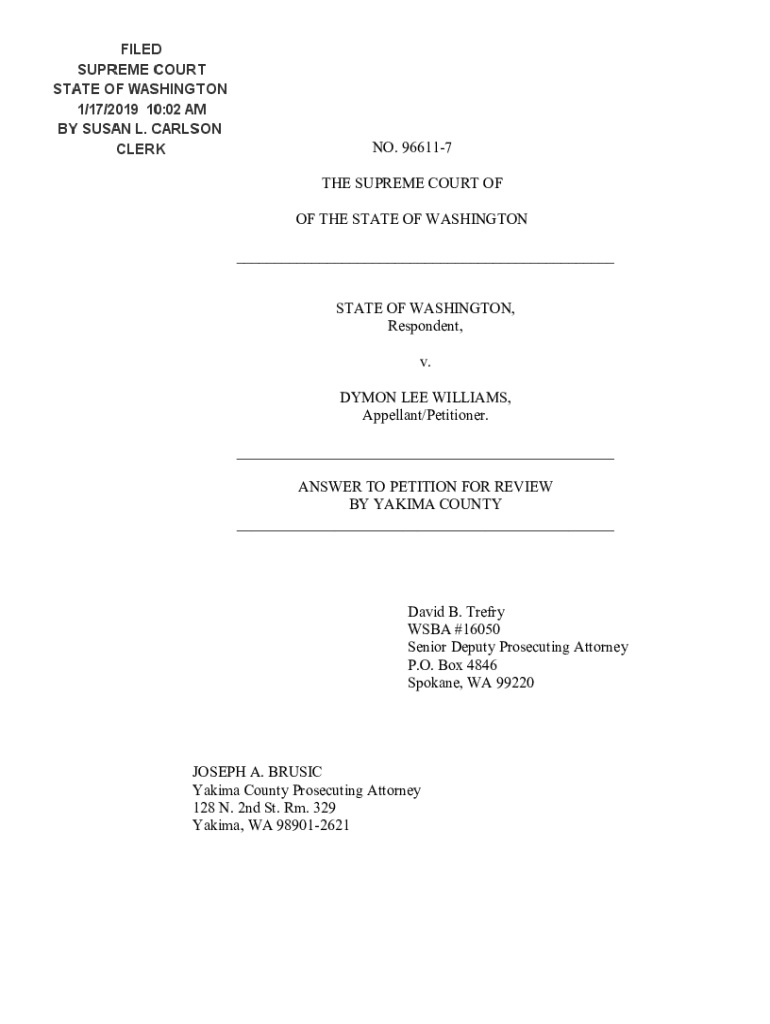 FILED SUPREME COURT STATE OF WASHINGTON 1/17/2019 10:02 AM BY SUSAN L. CARLSON CLERK NO. 966117 THE SUPREME COURT OF THE STATE OF WASHINGTON ___STATE OF WASHINGTON, Respondent, v. DEMON LEE WILLIAMS,