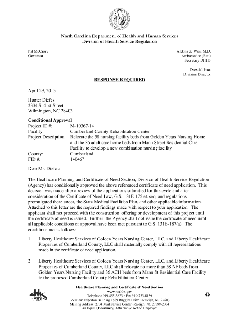 Get the free NC DHSR HPCON: Decision for Cumberland County Rehabilitation ...