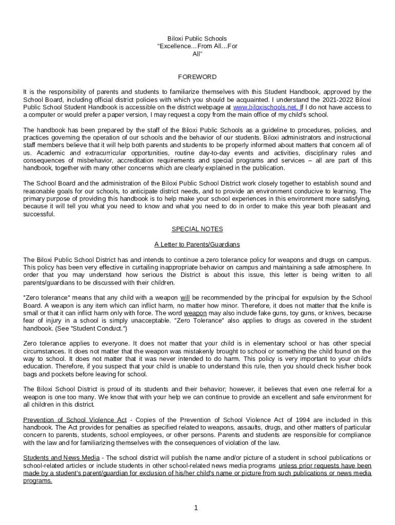 - Search for the Biloxi Public Schools FOREWORD in the Search box on the top of the main page.