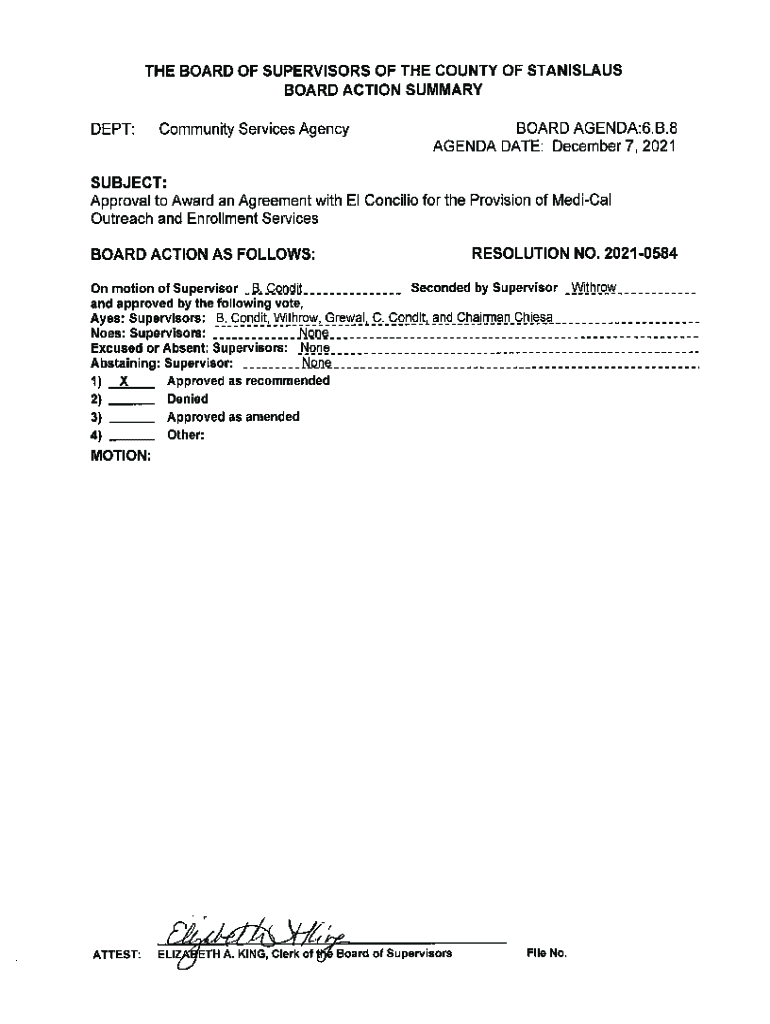 THE BOARD OF SUPERVISORS OF THE COUNTY OF STANISLAUS AGENDA ITEM DEPT:Community Services AgencyBOARD AGENDA:6. B.8 AGENDA DATE: December 7, 2021CONSENT: CEO CONCURRENCE: YES4/5 Vote Required: Subject:
