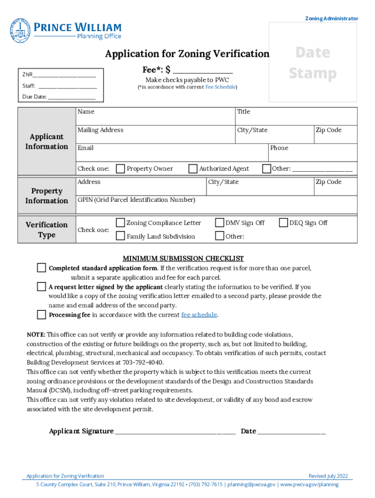 StampApplication for Zoning Verification