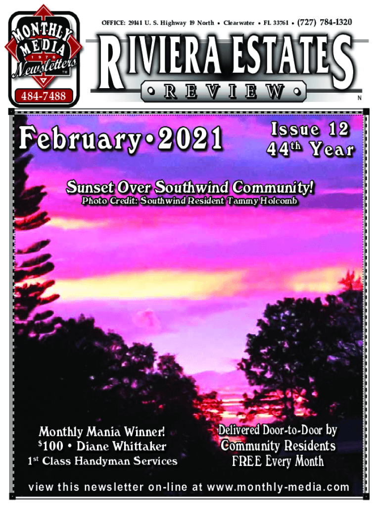 MMM O NTH LY M E Dias Newsletter 1976TM4847488IVIERA ESTATE R S OFFICE: 29141 U. S. Highway 19 North Clearwater FL 33761 (727) 7841320 R E V I E W February 2021Issue 12 4 4th Y e a sunset Over South