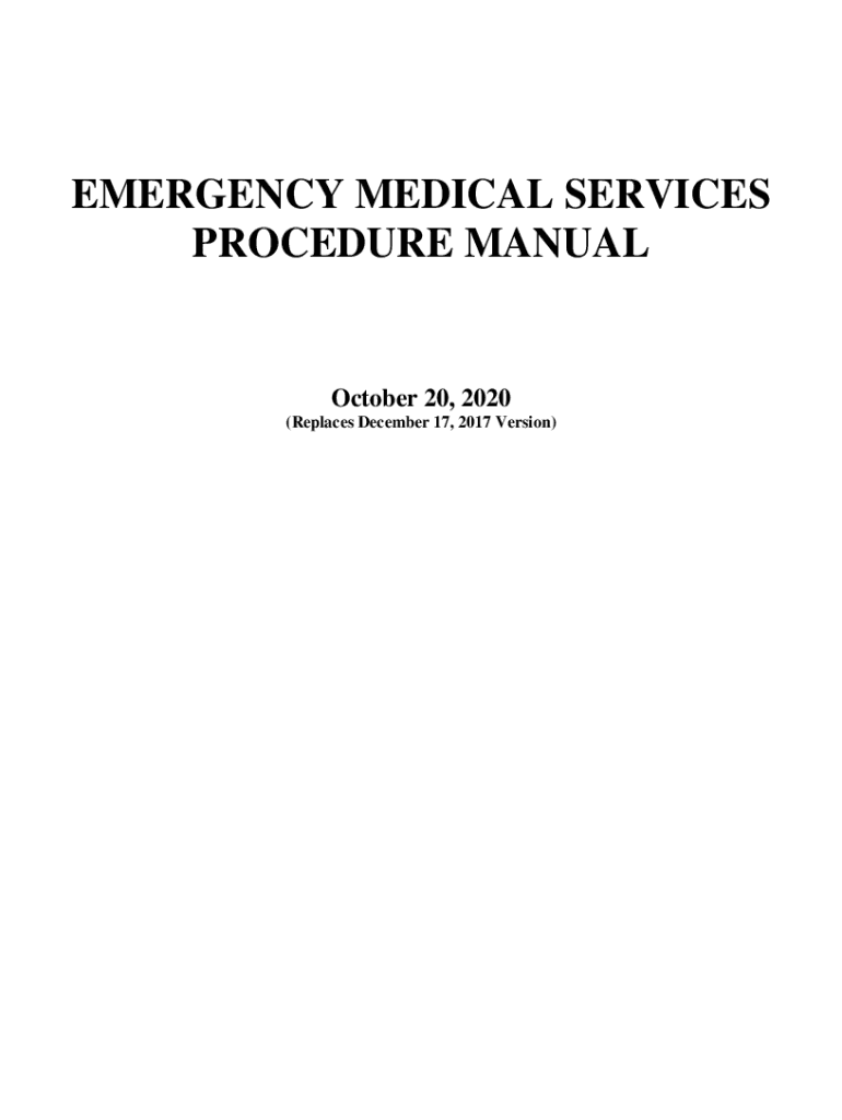 EMERGENCY MEDICAL SERVICES PROCEDURE MANUAL October 20, 2020 (Replaces December 17, 2017, Version)TERMS AND CONVENTIONS AAMSmeans Association of Air Medical ServicesAEMTmeans Advanced Emergency Medical