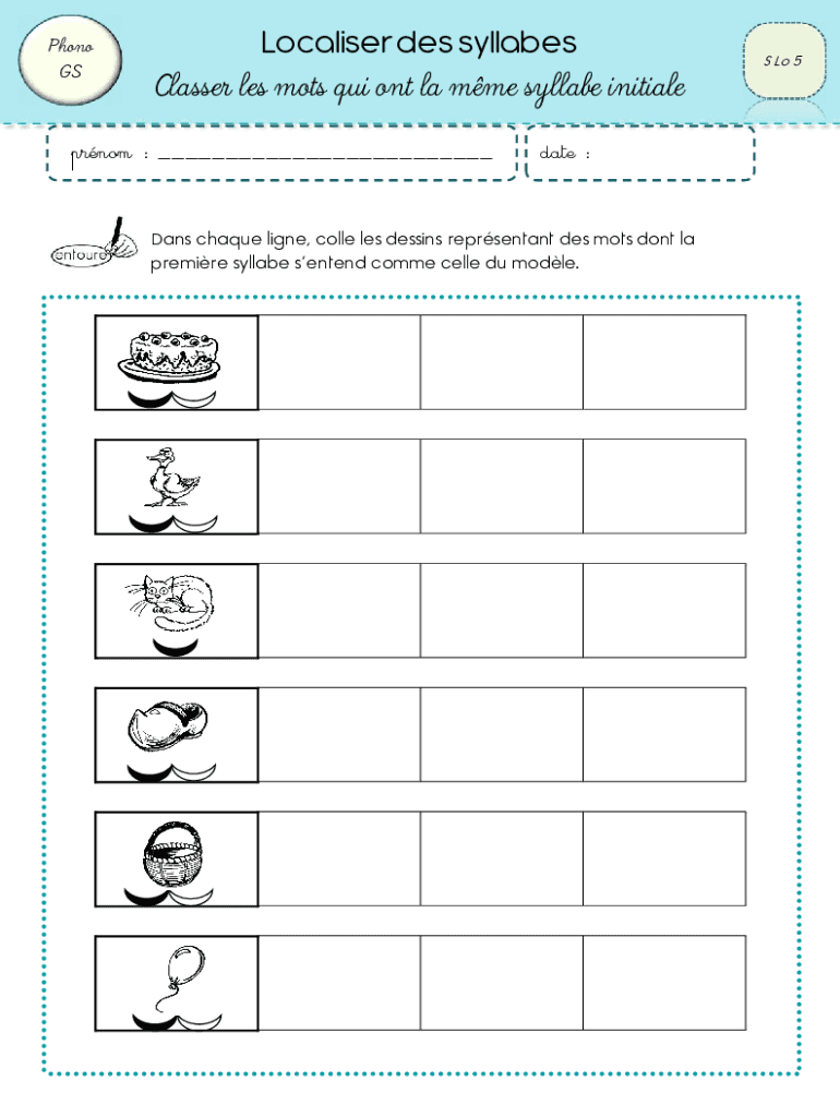 Photo Localizer DES syllables Classes LES mots quit ONT la Mme syllable initialeprnom : ___date :Dan's claque line, Cole LES designs repentant DES mots don't la premiere syllable sen tend come cell