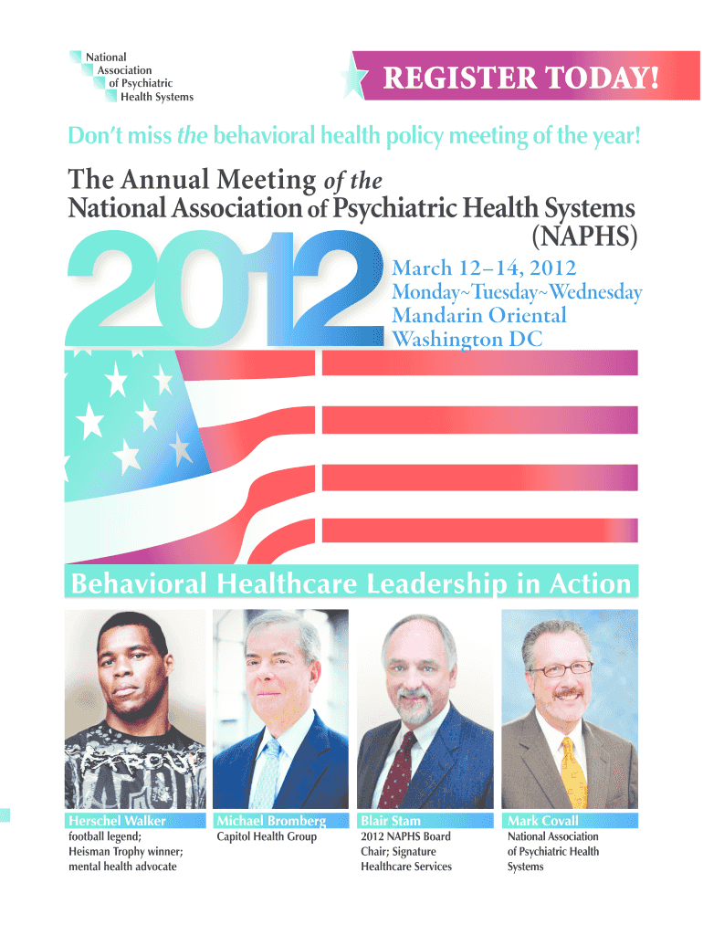 National Association of Psychiatric Health Systems REGISTER TODAY! Don't miss the behavioral health policy meeting of the year! The Annual Meeting of the National Association of Psychiatric Health
